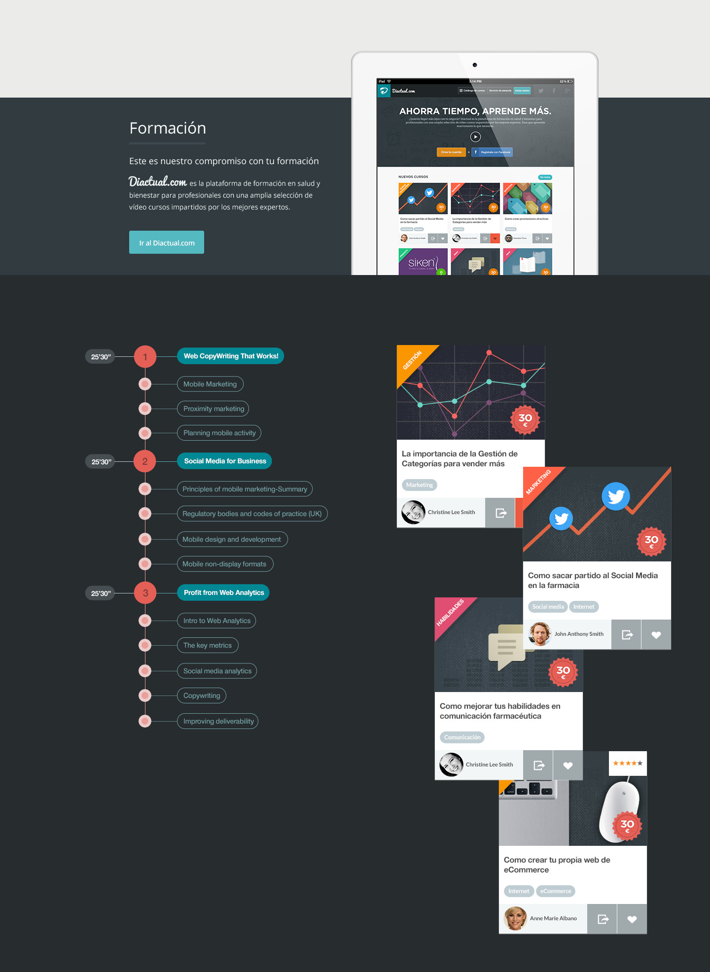 Diactual es un servicio de formación especializada online y presencial, impartida por profesionales expertos, mediante cápsulas formativas, servicios y herramientas de gestión. El objetivo es ayudar a mejorar el negocio y la oferta de todos los profesionales de la salud y el bienestar. Todo ello de manera práctica, cómoda y a precios asequibles.