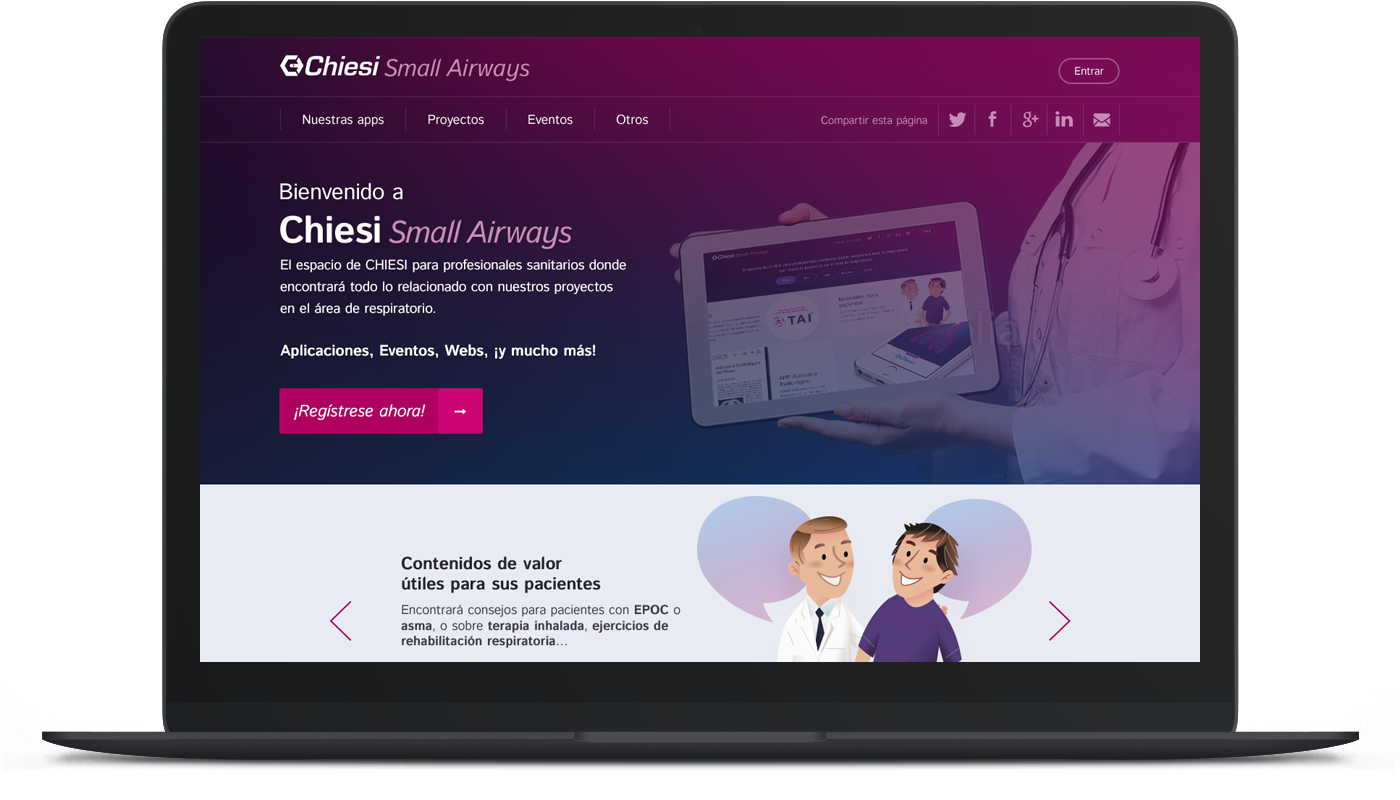 Small Airways es un espacio de Chiesi Respiratorio para profesionales sanitarios con toda la información y recursos relacionados con las patologías respiratorias, aplicaciones, eventos, webs, etc.