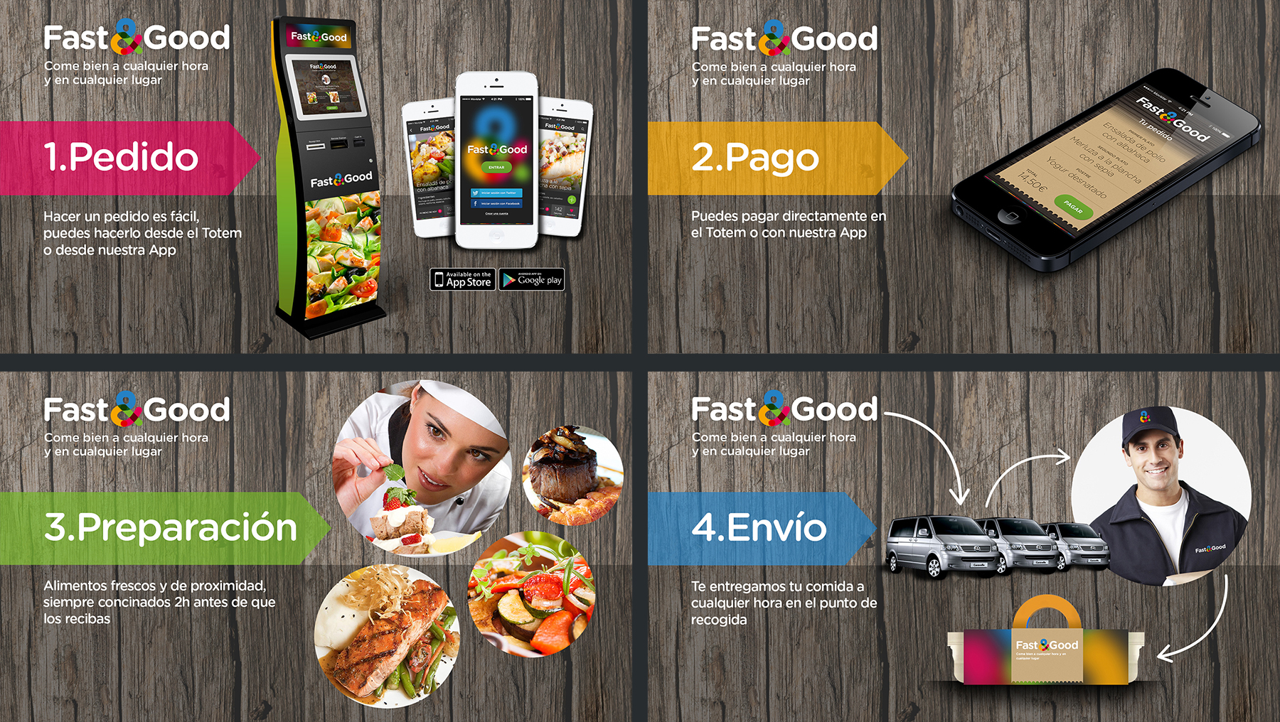 Muchos profesionales sanitarios de centros de salud trabajan en largos turnos y guardias nocturnas. Con estos horarios tan exigentes, muchas veces no disponen de la infraestructura ni de los servicios para poder comer adecuadamente. Fast & Good propone solucionar esta situación con un servicio de delivery a medida con el que el profesional sanitario puede hacer su pedido puntualmente o de forma programada. Los pedidos son entregados en el centro a la hora convenida y depositados en un contenedor especialmente diseñado para mantener la comida a la temperatura adecuada hasta su consumo.