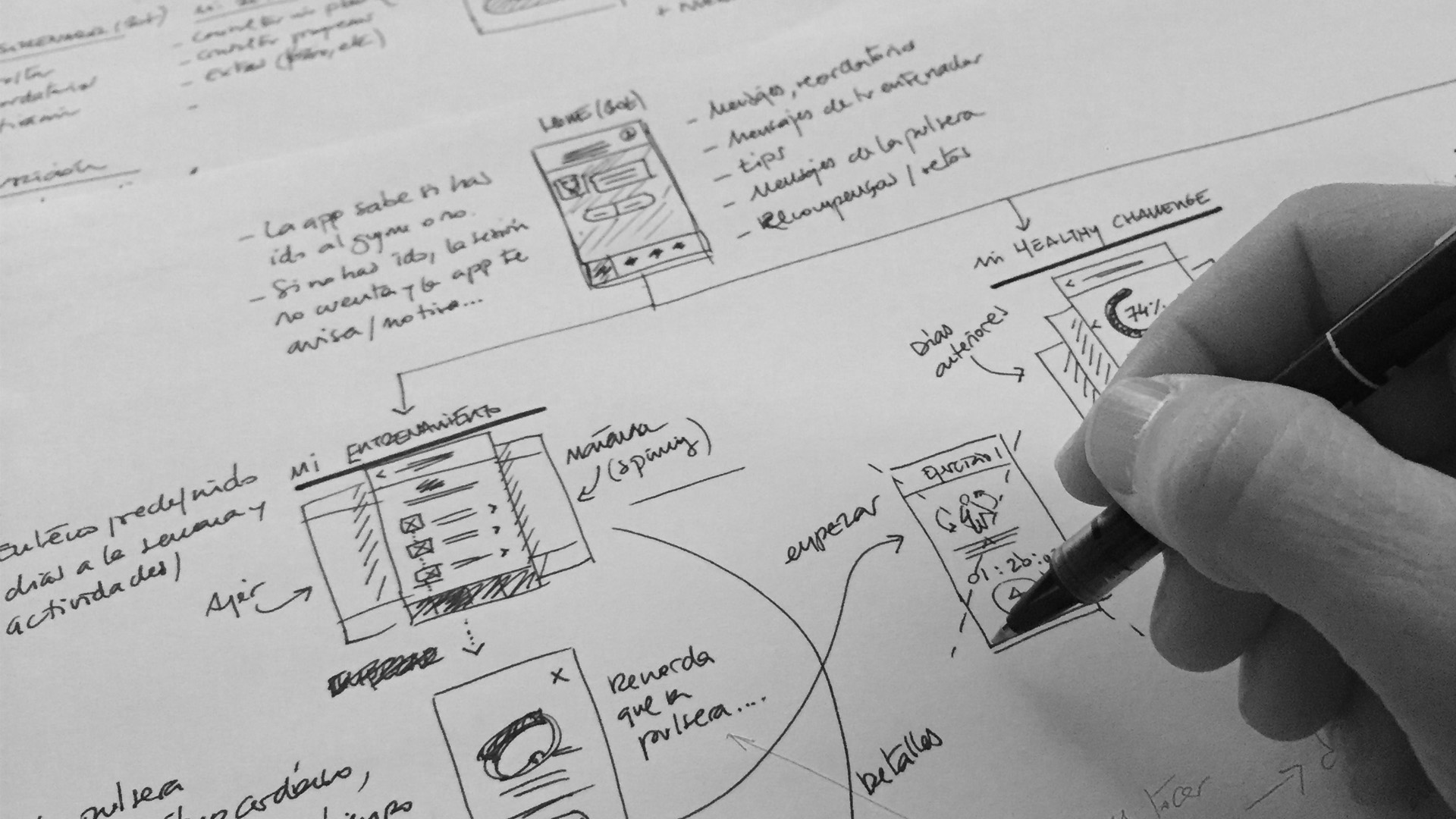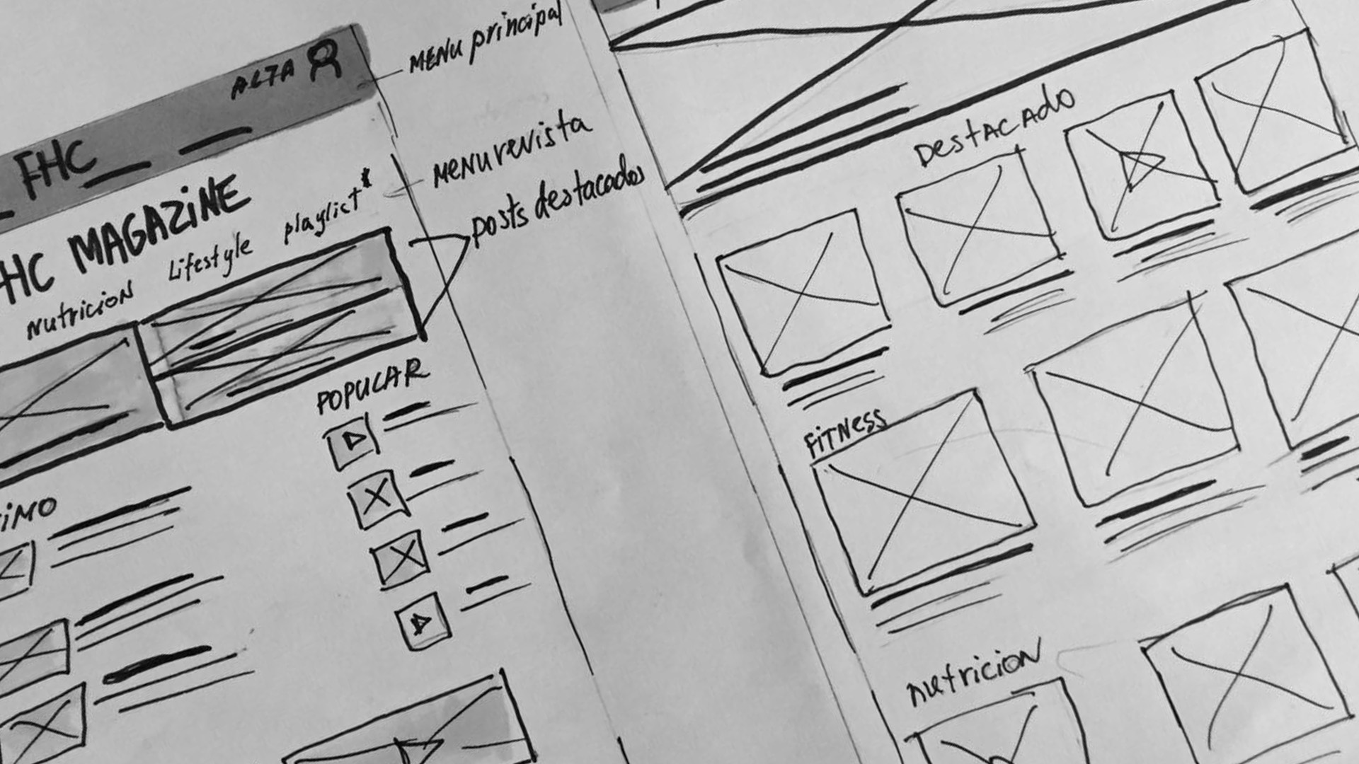 Una vez definidas las necesidades y objetivos de nuestros usuarios, empezamos a bocetar las primeras soluciones de diseño, teniendo siempre en cuenta las historias de usuario de cada una de las personas principales.