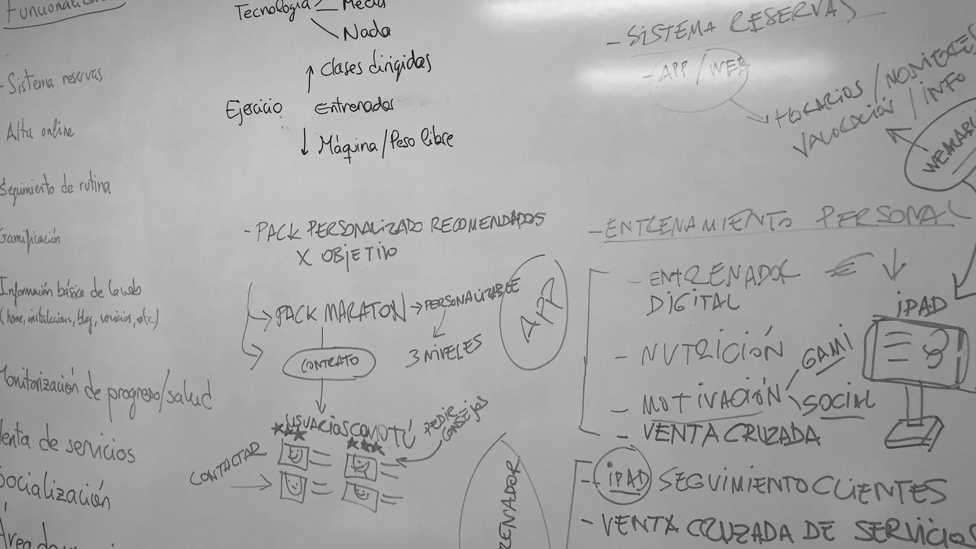 A la hora de abordar el proyecto, el primer paso fue investigar las soluciones existentes en el mercado y las tendencias en el mundo del Fitness y del Healthcare y otros sectores donde la tecnología y la personalización de servicios tiene un papel diferenciador importante (Wearable technology, Chatboots, Salud personalizada, Auto seguimiento, etc.