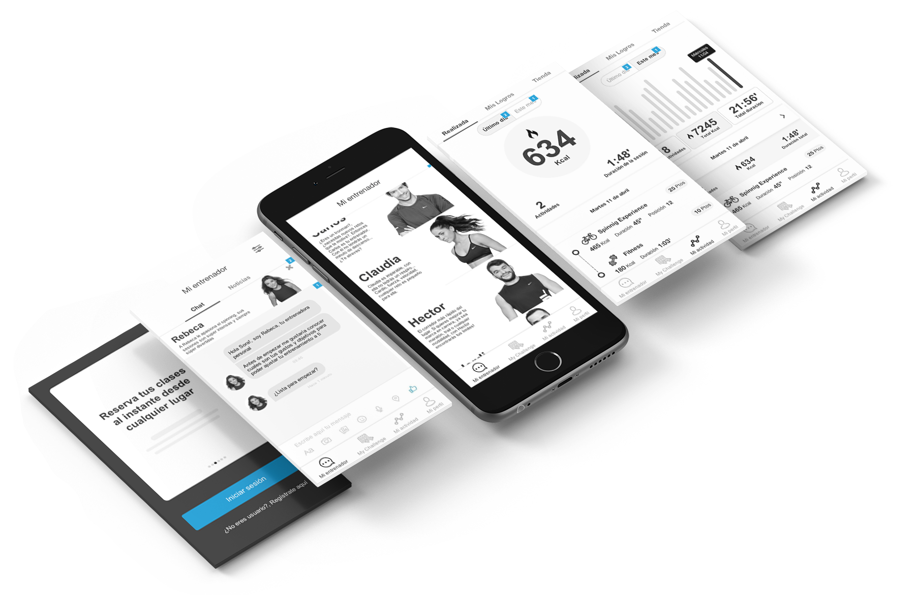 Un dispositivo wearable que registra toda la actividad del usuario dentro y fuera del gimnasio y la sincroniza con la web y la App: asistencia al gimnasio, confirmación de reservas, participación en clases dirigidas, registro de actividad en cada sesión de entrenamiento, compatible con todos los equipamientos del gimnasio, sistema “manos libres” para acceder al centro y a su taquilla, realizar pagos de servicios dentro del gimnasio (restaurante, tienda, fisio, nutricionista, etc)