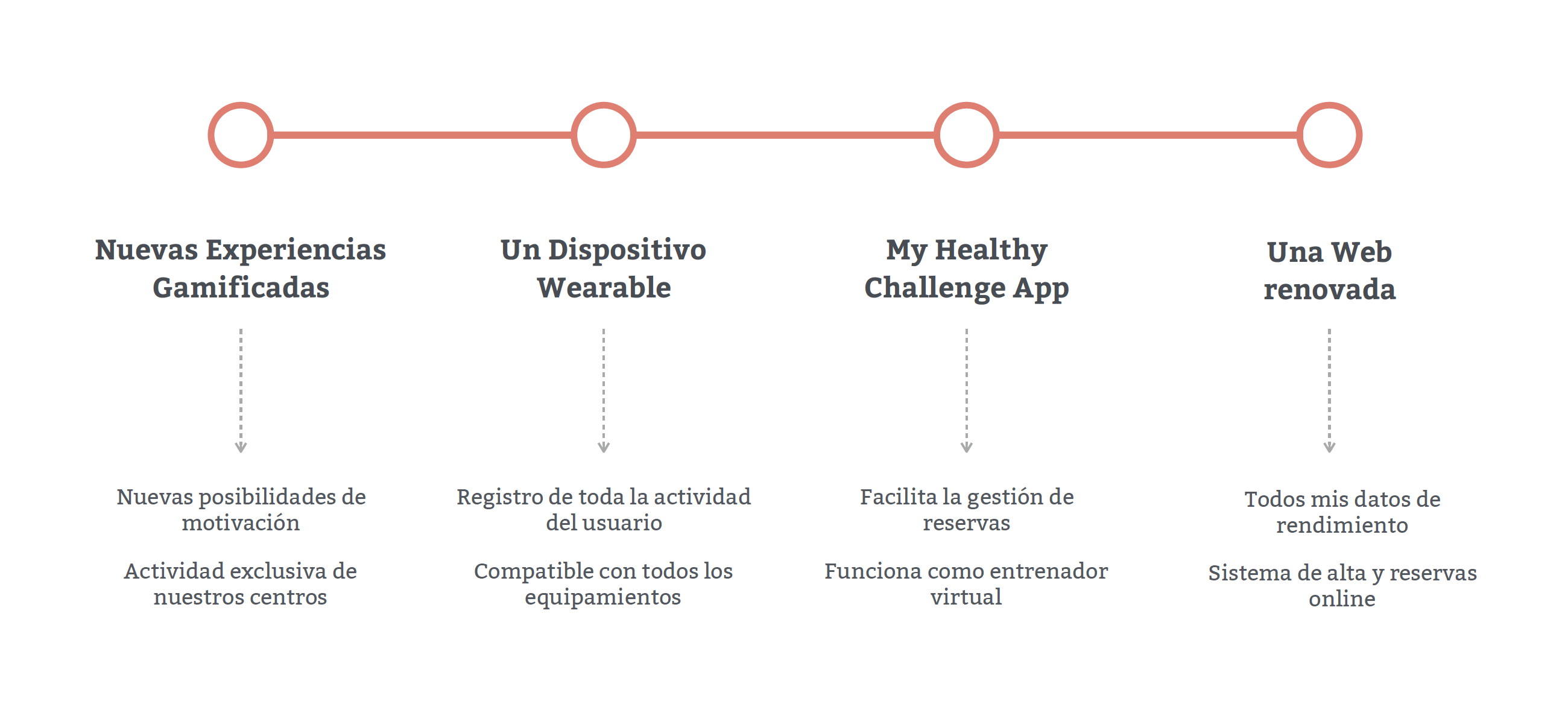 Convertiremos la web en un espacio de referencia en salud donde los usuarios podrán consultar: horarios de actividades, reserva de actividades y servicios, información sobre nutrición, salud, deporte y bienestar, todos mis datos de entrenamientos, logros, etc.